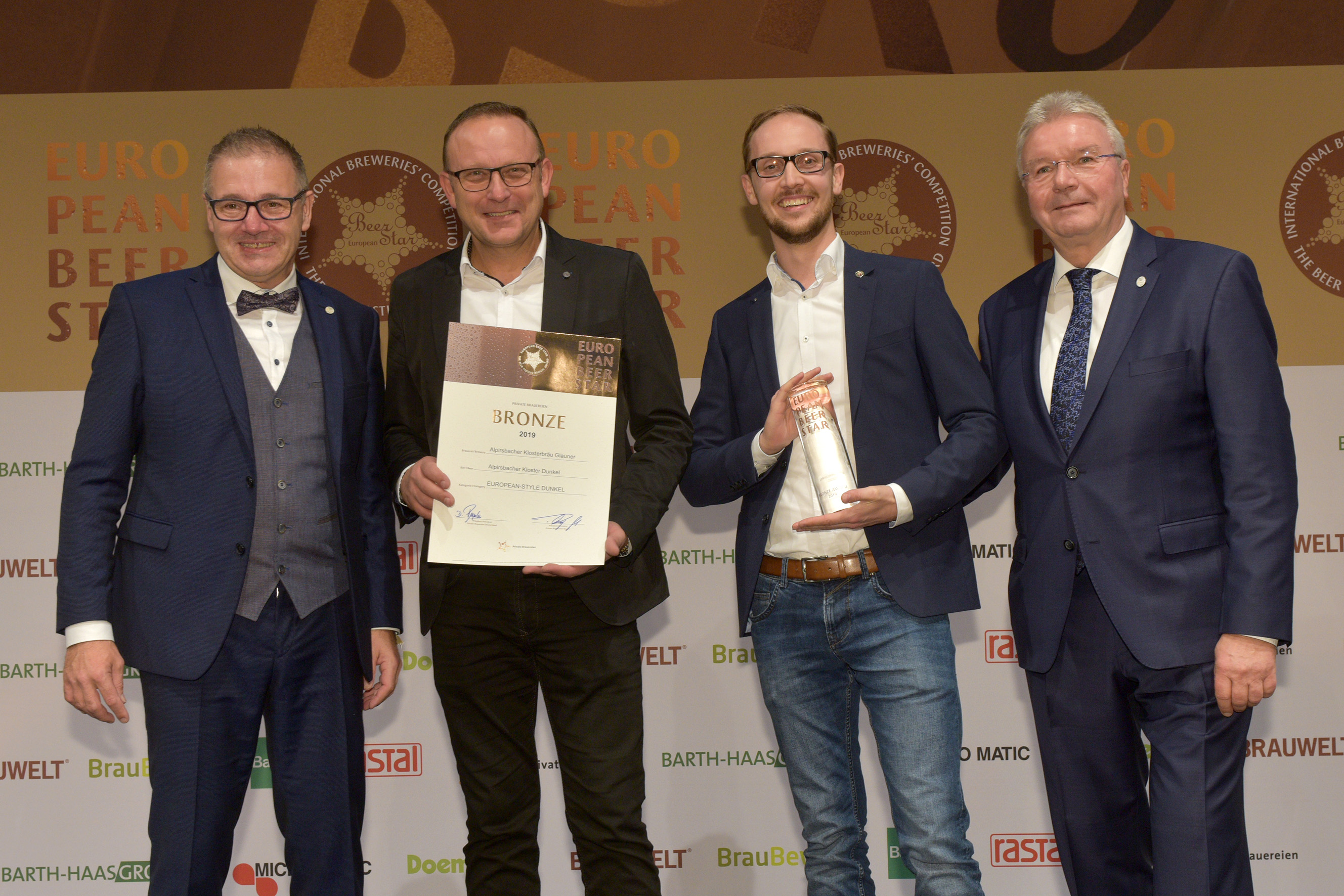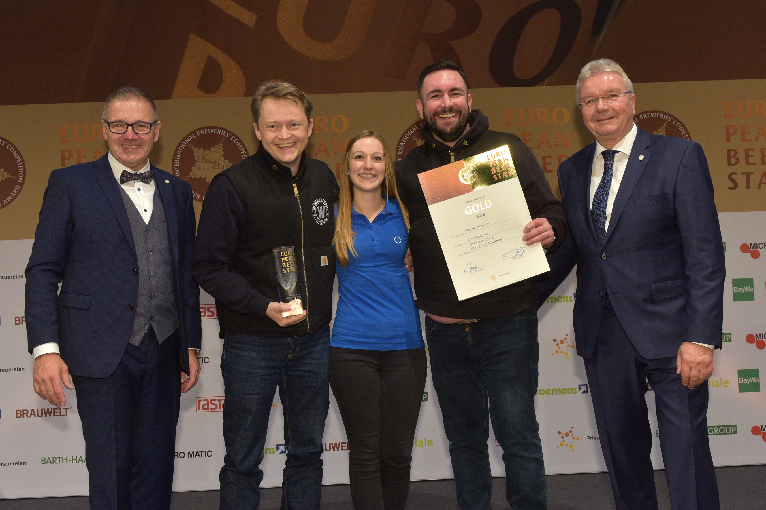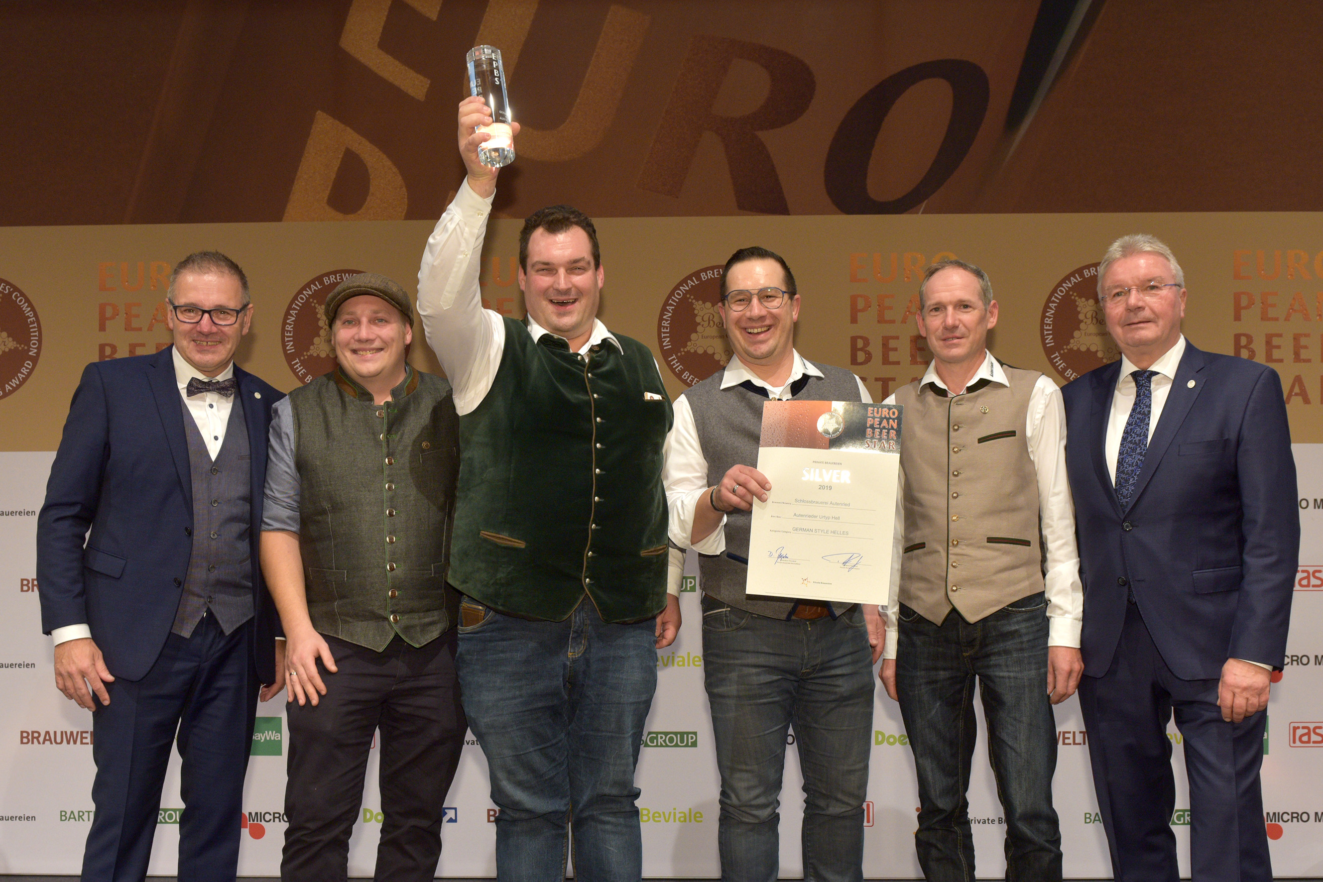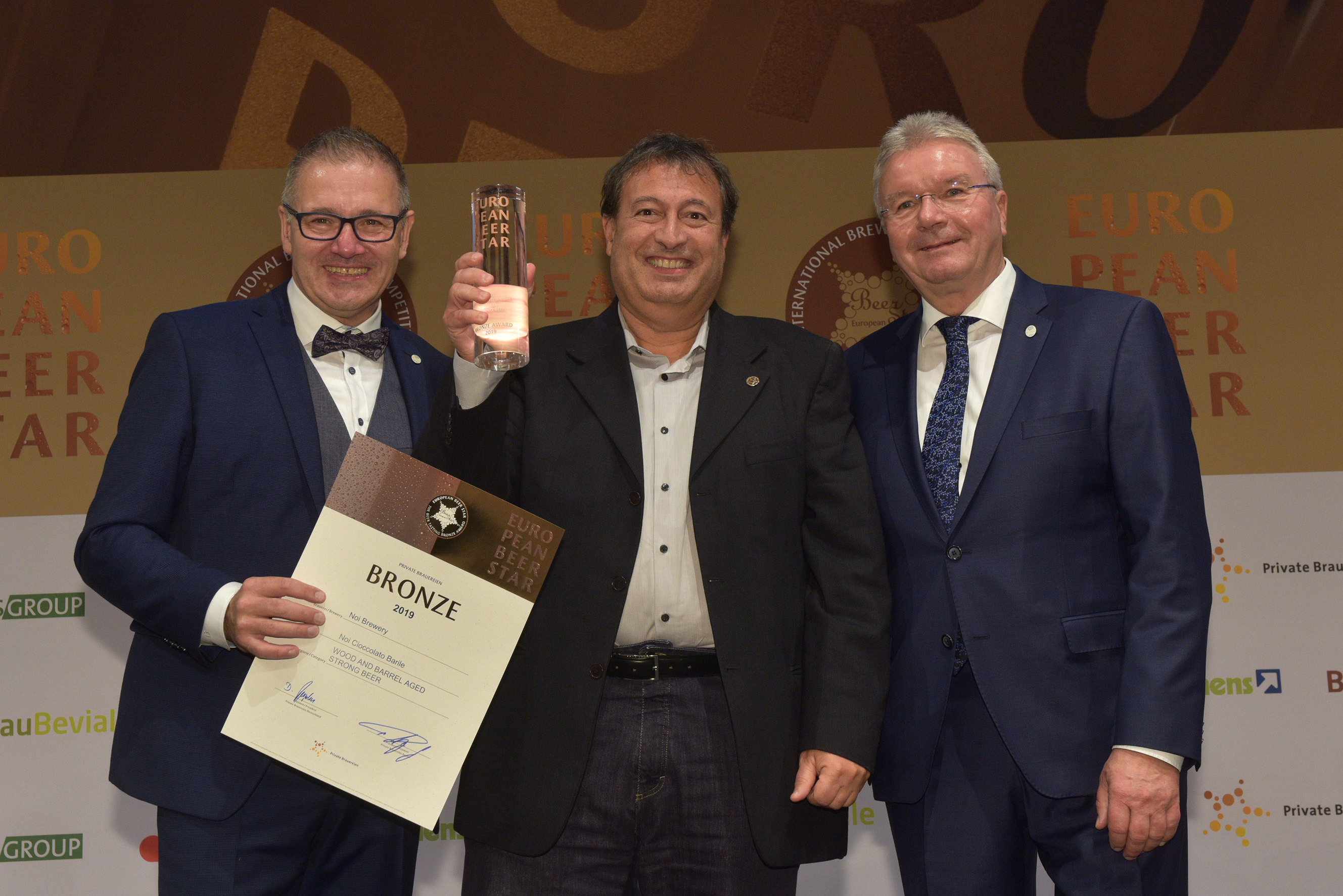 EUROPEAN BEER STAR AWARD 2019 überreicht von: links: Georg Rittmayer, Präsident der Privaten Brauereien Bayern e.V. rechts: Detlef Projahn, Präsident der Privaten Brauereien Deutschland e.V.